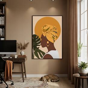 Quadro Decor Mulher De Turbante 70x50cm Mold Preta
