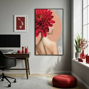 Quadro Decor Mulher Flor Vermelha 70x50cm Mold Branca