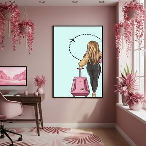 Quadro Decor Mulher Viajante 70x50cm Mold Branca