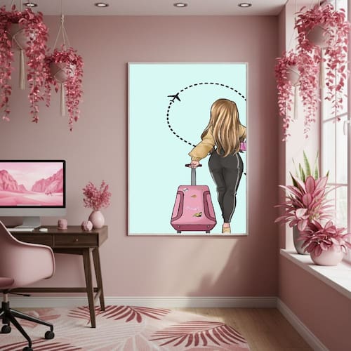 Quadro Decor Mulher Viajante 70x50cm Mold Preta
