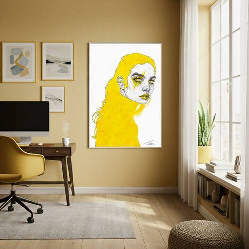 Quadro Decor Retrato Em Açafrão 70x50cm Mold Preta