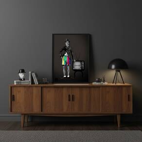 Quadro Decor Retrô Charlie Chaplin TV 24x18cm Mold Branca