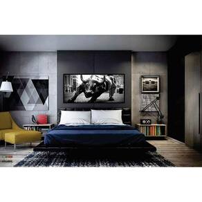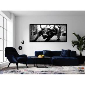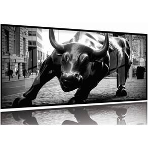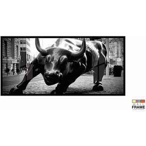 Quadro Decoração Touro de Wall p&b Street 130x60 Moldura Preta 2x2