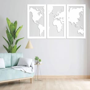 Quadro Decoração Vazado Mapa Mundi Mdf 6Mm Branco 100X60 Cm