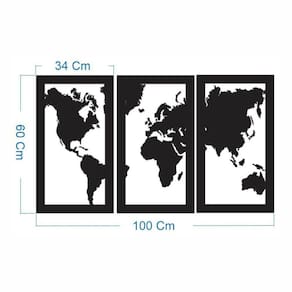Quadro Decoração Vazado Mapa Mundi Mdf 6Mm Branco 100X60 Cm