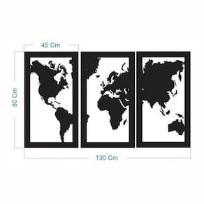 Quadro Decoração Vazado Mapa Mundi Mdf 6Mm Preto 130X80 Cm