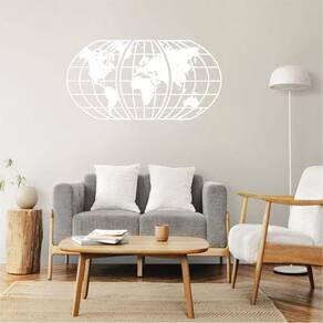Quadro Decoração Vazado Mapa Mundi World Triplo Branc 100X51