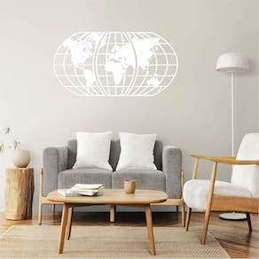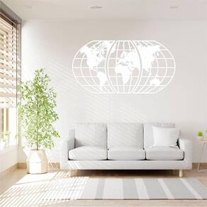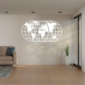 Quadro Decoração Vazado Mapa Mundi World Triplo Branco 70X37