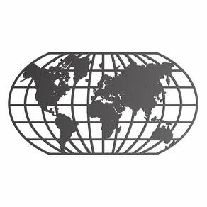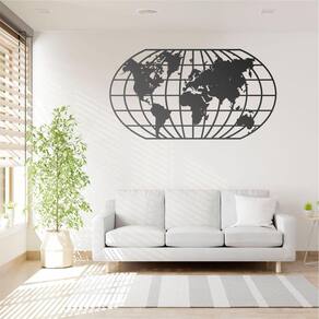 Quadro Decoração Vazado Mapa Mundi World Uno Preto 120X65 Cm