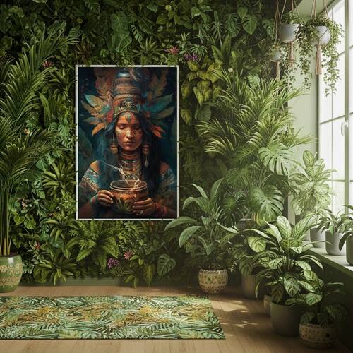 Quadro Decorativa Índia Cabocla Jurema - 70x50cm - Cor: Moldura Branca