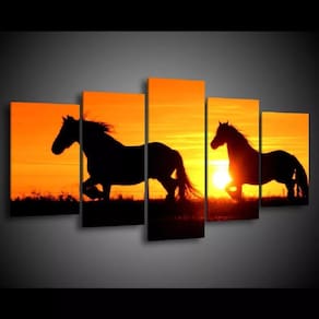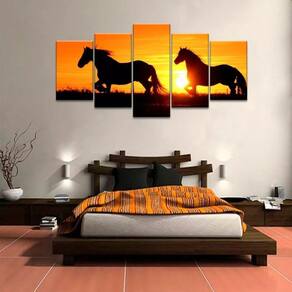 Quadro Decorativo 129x63 Sala Cavalos Por Do Sol Animais 1