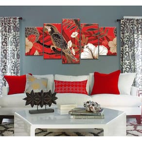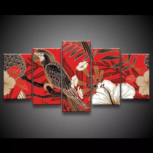 Quadro Decorativo 129x63 Sala Quarto Arte Arara E Flores 1