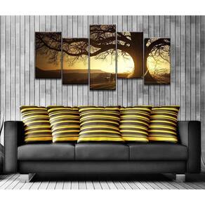 Quadro Decorativo 129x63 Sala Quarto Árvore Sol Paisagem
