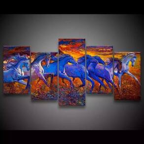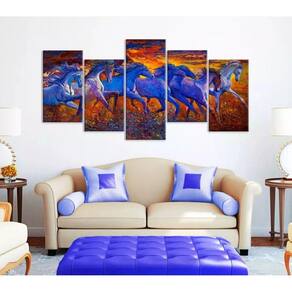 Quadro Decorativo 129x63 Sala Quarto Cavalos