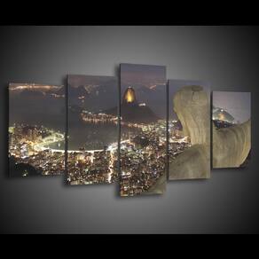 Tamanho total: 129cm comprimento X 63cm altura Peças menores: 25x40 cm Peças médias: 25x50 cm Peça central: 25x63 cm Espaçamento entre as peças: 1 cm A instalação é bem simples, pois utilizamos o método tradicional, pendurado com prego e martelo. Para limpeza, utilize apenas um pano umedecido com água sem produtos químicos para garantir a durabilidade. Nossos quadros são impressos em adesivo fosco, aplicado em MDF com espessura de 9mm. Não necessita de moldura, pois o acabamento das bordas/laterais é feito com a própria imagem impressa. Marca: Mv Decor Ean: 7898667193516