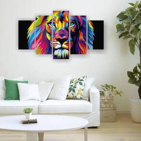Quadro Decorativo 129X63 Sala Quarto Leão Luxo Judá