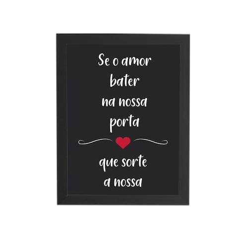 Quadro Decorativo 20X25-Se O Amor Bater A Nossa Porta-1846Pr Quadro decorativo para alegrar o seu ambiente. Fabricado em madeira pinos, laqueada, contém pendurador, imagem impressa de forma texturizada. Medidas: 20X25 Ficha técnica - Inclui gancho: Sim - É sublimado: Não - É artesanal: Sim - Com frases: Sim - É produto personalizado: Sim - Material da : Madeira - Cor da : Preto - Com vidro: Não - Inclui : Sim - Espessura da : 2,0 - Quantidade de quadros: 1 Marca: Click Registrado