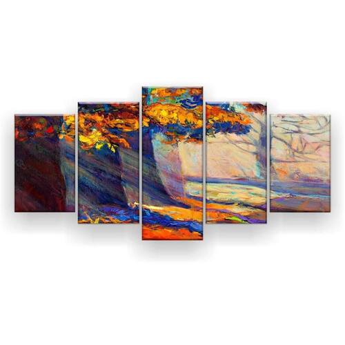 Quadro decorativo mosaico 5 peças pintura pôr do sol outono floresta Descrição excelência-variedades