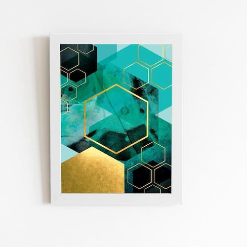 Deixe sua casa, escritório, quarto ou qualquer outro ambiente com um toque especial com o Quadro Geométrico Verde E Dourado Moldura Branca 60X40Cm. Adquira já o seu e tenha um impacto visual inesquecível!