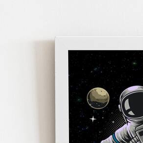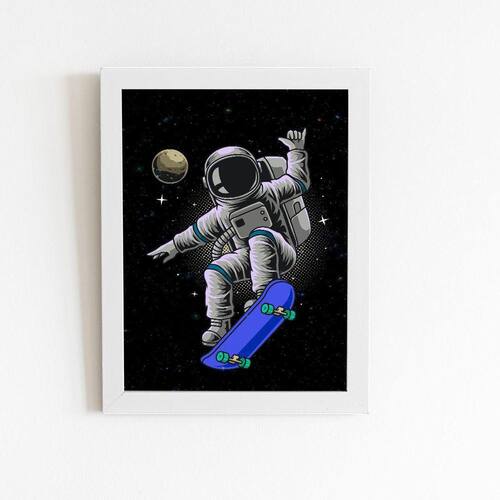 O quadro Astronauta De Skate Universo possui as seguintes especificações técnicas: - Material: Eucatex adesivado com adesivo vinil - Tipo de moldura: Frontal - Medidas: 60x40cm - Acompanha gancho para pendurar