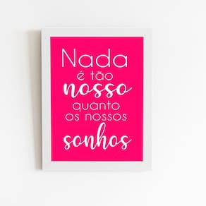 Decore seus ambientes preferidos com o Quadro Nossos Sonhos Frase Rosa. Com uma moldura de ótimo acabamento, esse quadro de 60x40cm é perfeito para sala, quarto, escritório, garagem e até espaço gourmet.