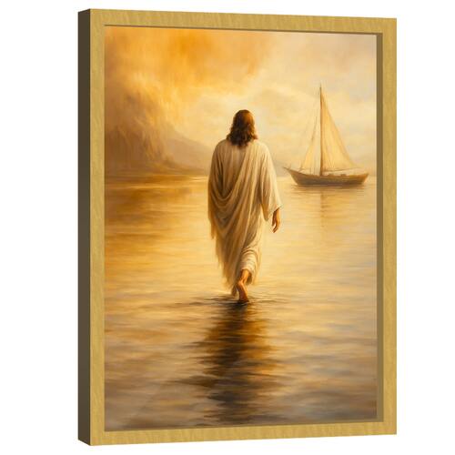 Quadro Decorativo A Caminhada de Jesus Moldura Dourada e Vidro - 180x105cm -