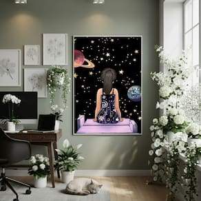 Quadro Decorativo A Menina E O Universo 70x50cm Mold Branca
