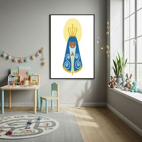 Quadro Decorativo A Proteção de N. S. Aparecida - 70x50cm - Cor: Moldura Branca
