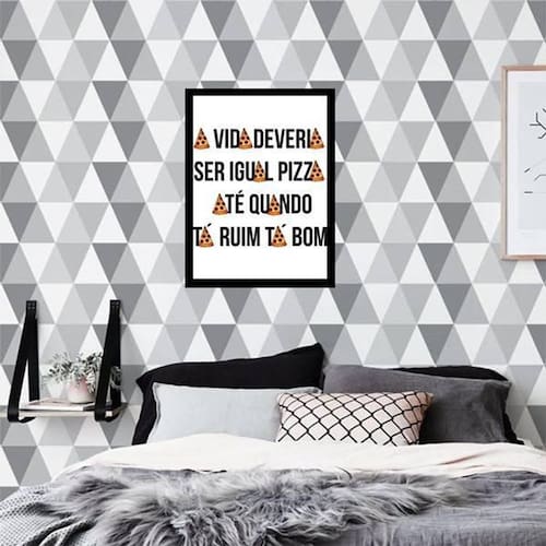 O Quadro Decorativo A Vida Deveria Ser Igual Pizza da Quadros On-Line é uma excelente opção para decorar seu ambiente, tornando-o mais aconchegante, bonito e com muito estilo. Para facilitar na instalação, o quadro já vem com pendurador que pode ser removido com facilidade. O quadro é produzido com papel fotográfico brilhante de alta resolução e acompanha uma película de acetato para proteção da imagem. Além disso, vem com moldura em madeira maciça e pendurador móvel que pode ser retirado facilmente caso deseje fixar com fita dupla face. Características: - Quadro com 34x23cm com moldura - Moldura em madeira maciça preta - Produzido em papel fotográfico brilhante - Acompanha película de acetato Especificações Técnicas Produto: Quadro Decorativo Marca: Quadros On-Line Modelo: A Vida Deveria Ser Igual Pizza Material: Papel Fotográfico Acabamento: Brilhante Acompanha: Película de acetato para proteção Instalação: Acompanha pendurador móvel Tamanho unidade: 34 x 23 cm : 3 meses Limpeza e conservação Para manter seus quadros sempre limpos e bem conservados a limpeza deve ser feita como em um móvel comum da sua casa. Apenas um pano seco ou um espanador já é suficiente para retirar o pó que pode se acumular nos quadros. Marca: Não Informado