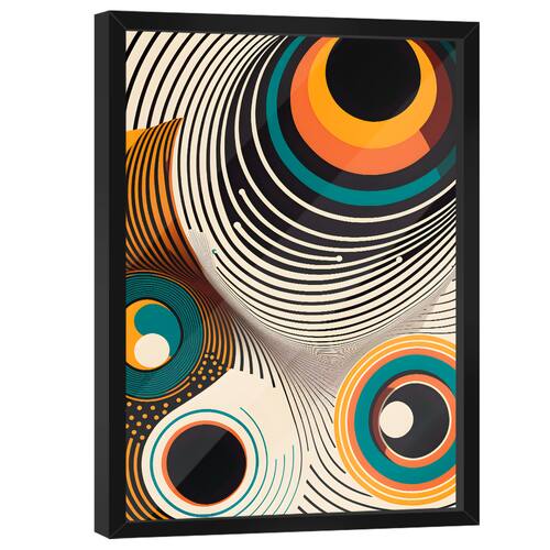 Quadro Decorativo Abstrato 3D Formas Moldura Preta e Vidro - 84x54cm -