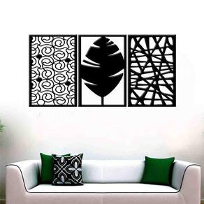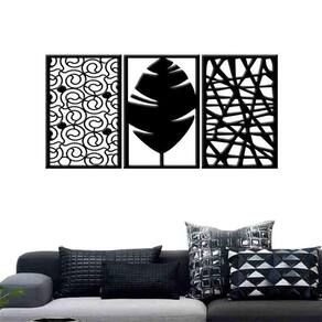 Quadro Decorativo Abstrato 3Mm Vazado - Mdf TAMANHO & INSTALAÇÃO: Tamanho total: 122cm comprimento X 60cm altura Com espaçamento recomendado de 1 cm entre peças, Peças laterais: 40x60 cm | Peça central: 40x60 cm Espaçamento entre as peças: 1 cm A instalação é bem simples, não será preciso fazer sujeira furando a parede pois utilizamos o método bem prático para instalar, contém fita dupla face 3M no verso do quadro. LIMPEZA DO PRODUTO Para limpeza, utilize apenas um pano umedecido com água sem produtos químicos para garantir a durabilidade. ACABAMENTO Nossos produtos são fabricados em MDF com espessura de 6mm cortados a laser. Desta forma terá um produto com acabamento de alta qualidade. Bordas/laterais serão na cor preta feito com a própria máquina de corte a laser, dando acabamento perfeito. GARANTIA / EMBALAGEM Embalagem reforçada e segura para que receba seu produto em perfeito estado. Garantia de produto de qualidade ou seu dinheiro de volta.