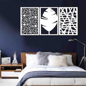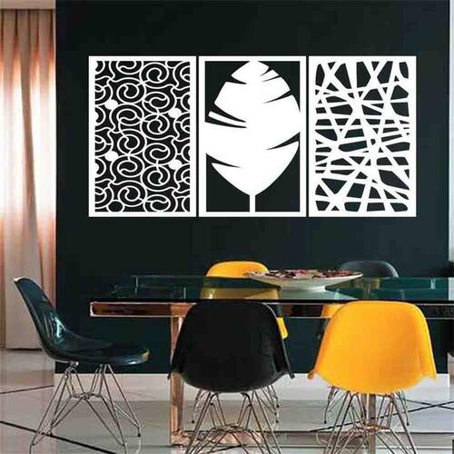 Quadro Decorativo Abstrato 6Mm Branco Vazado - Mdf TAMANHO & INSTALAÇÃO: Tamanho total: 122cm comprimento X 60cm altura Com espaçamento recomendado de 1 cm entre peças, Peças laterais: 40x60 cm | Peça central: 40x60 cm Espaçamento entre as peças: 1 cm A instalação é bem simples, não será preciso fazer sujeira furando a parede pois utilizamos o método bem prático para instalar, contém fita dupla face 3M no verso do quadro. LIMPEZA DO PRODUTO Para limpeza, utilize apenas um pano umedecido com água sem produtos químicos para garantir a durabilidade. ACABAMENTO Nossos produtos são fabricados em MDF com espessura de 6mm cortados a laser. Desta forma terá um produto com acabamento de alta qualidade. Bordas/laterais serão na cor preta feito com a própria máquina de corte a laser, dando acabamento perfeito. GARANTIA / EMBALAGEM Embalagem reforçada e segura para que receba seu produto em perfeito estado. Garantia de produto de qualidade ou seu dinheiro de volta.