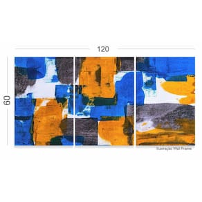Quadro Decorativo Abstrato Azul Amarelo 3 peças 120x60