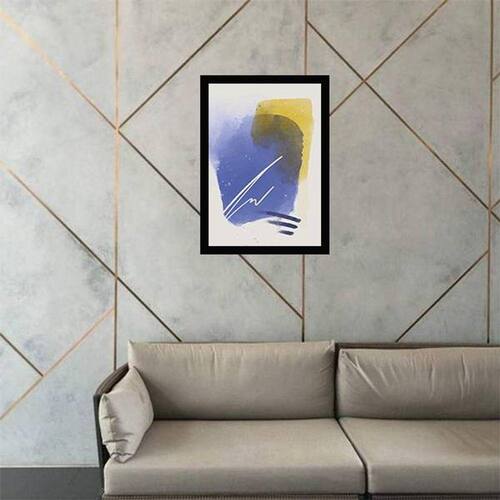 Quadro Decorativo Abstrato Azul e Amarelo II - Tamanho: A4 (20 x 30) / Acabamento: Película de acetato / Moldura: Madeira preta