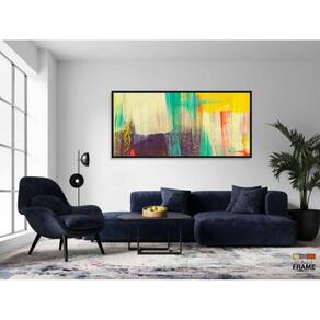 Quadro Decorativo Abstrato Color Pincel 130x60 Moldura Preta 2x2