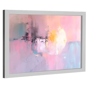 Quadro Decorativo Abstrato Estilo Pintura Rosa Moldura Preta e Vidro - 84x54cm -