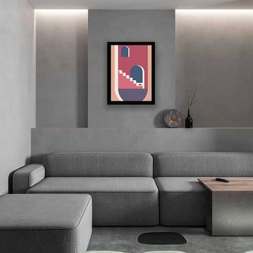 Quadro Decorativo Abstrato Figurativo Cidade Rosa e Azul IV - Tamanho: A4 (20 x 30) / Acabamento: Película de acetato / Moldura: Madeira preta