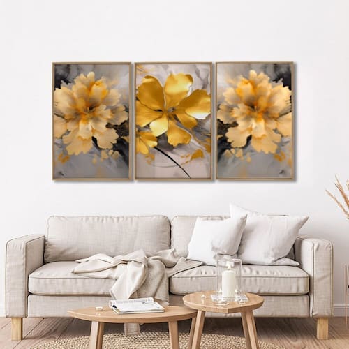 Quadro Decorativo Modelo Floral Amarelo com 3 Telas 50x75cm ou 60x90cm para Sala, Quarto, Banheiro, Escritório, Hall, Hall de Entrada, Estúdio, Salão, Clínica. !Especificações Técnicas:Modelo: Floral Amarelo;Material da Imagem: Papel premium fotográfico de alta qualidade;Material da Moldura: Madeira de reflorestamento revestida;Espessura da Moldura: 2,7cm de profundidade e 1,5cm frontal;Medidas: 50x75cm ou 60x90cm;Acabamento: Fita Kraft;Acompanha: Suporte de serrilha para quadros e parafusos.Transforme seu espaço com elegância e sofisticação! Não perca a oportunidade de adquirir o exclusivo Quadro Decorativo Floral Amarelo com 3 Telas a um preço incrível.Aproveite! Clique agora em "COMPRAR" e garanta o seu Quadro na comodidade de casa, com envio em até 5 dias úteis. Acompanha Fixação para Parede: Sim Ambiente Principal: Jardim e Varanda Espessura: 28 mm Espessura do Vidro: 3 mm Itens Inclusos: 3 Quadros e Suporte para Fixação Marca: ARTE PRÓPRIA Material Principal: Madeira Maciça Origem do Produto: Nacional Peso: 12 kg Possui Paspatur: Não Possui Vidro: Sim Tema da Estampa: Floral Tipo de Quadro: Quadro Marca: Não Informado
