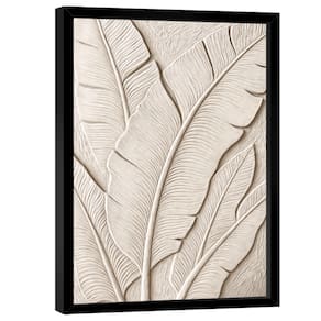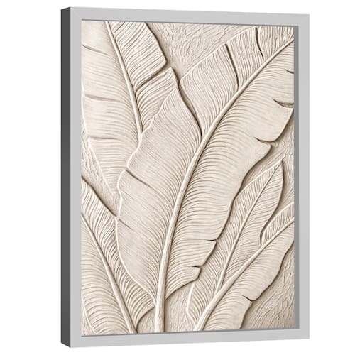 Quadro Decorativo Abstrato Folha Off-White Moldura Branca - 60x40cm -