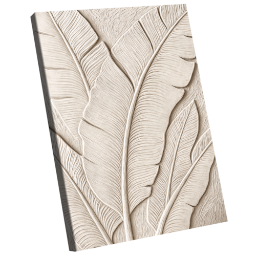 Essas molduras estilo canaleta, com perfil de 5 cm de profundidade, são cuidadosamente projetadas para complementar o mesmo tecido canvas esticado no chassi, mantendo a essência da obra enquanto adicionam uma camada adicional de destaque e elegância.