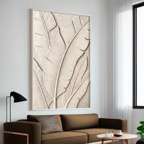 Quadro Decorativo Abstrato Folha Off-White Borda Infinita - 60x40cm -