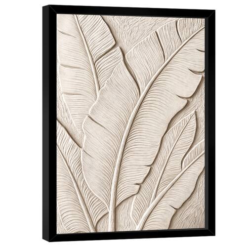 Quadro Decorativo Abstrato Folha Off-White Moldura Preta - 60x40cm -