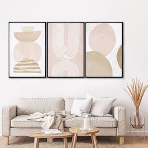 Transforme seu espaço com elegância e sofisticação! Não perca a oportunidade de adquirir o exclusivo Quadro Decorativo Abstrato Formas Arredondadas com 3 Telas a um preço incrível.