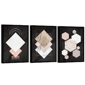 Quadro Decorativo Abstrato Formas na Cerâmica Moldura Preta e Vidro - 150x100cm -