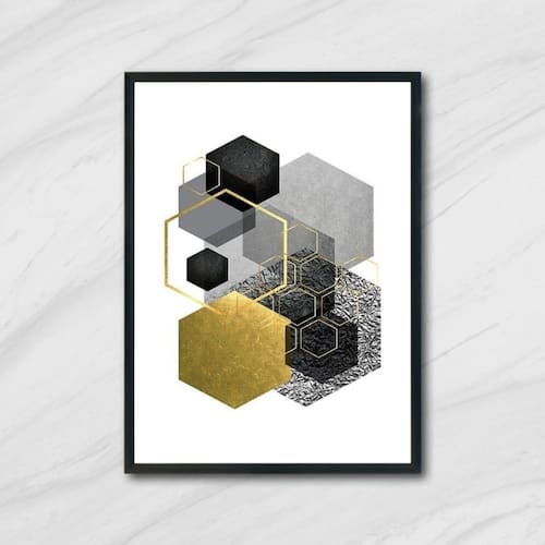 Quadro Decorativo Abstrato Geométrico Hexágonos - Tamanho: A4 (20 x 30) / Acabamento: Película de acetato / Moldura: Madeira preta