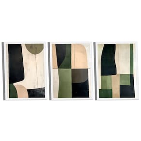 Quadro Decorativo Abstrato Geométrico Verde e Preto Borda Infinita - 60x40cm -