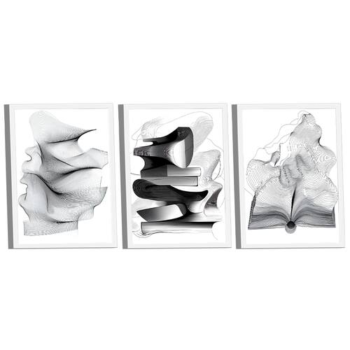 Quadro Decorativo Abstrato Ilustração Simples Moldura Branca - 84x54cm -