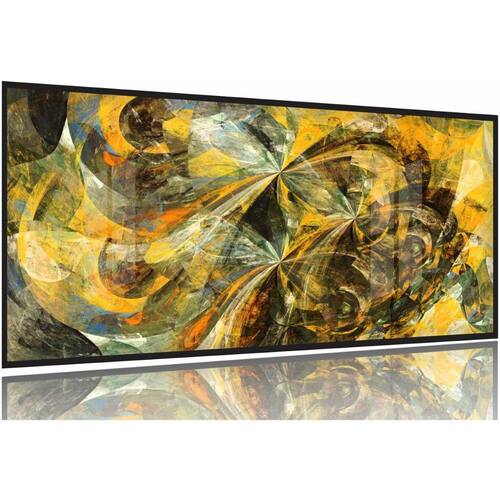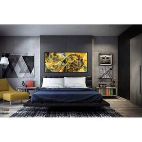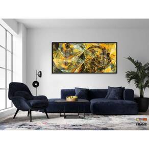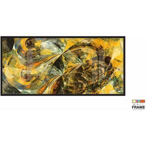 Quadro Decorativo Abstrato Marmore Amarelo 130x60 Moldura Preta 2x2