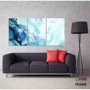 Quadro Decorativo Abstrato Marmore Azul 3 peças 120x60