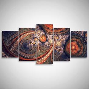 Quadro decorativo Abstrato Mosaico 5 Peças Dimensões do Produto: Tamanho total do produto: 125x60 cm Comprimento x Altura 02 Peças menores: 25x40 cm 02 Peças Médias: 25x50 cm 01 Peça Central: 25x60 cm. Espaçamento entre as peças de 1 cm - Tamanho total com espaçamentos 129x60 cm. Espessura do produto - 9 mm